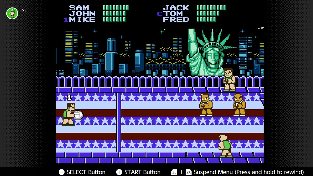 Super Dodge Ball is an NES game in which the player takes control of an American dodgeball team and competes against other national teams on a journey around the world.* There is an English team–replace New York and the Statue of Liberty in the screenshot with London and the Tower Bridge–an Indian team, an Icelandic team, a Kenyan team, Team Japan, and, finally, a boss battle with Team USSR. You should watch the playthrough here if you want to see the game in action. Nintendo thought highly enough of the game to include it with the NES games on Nintendo Switch Online, which is where the screenshot comes from.