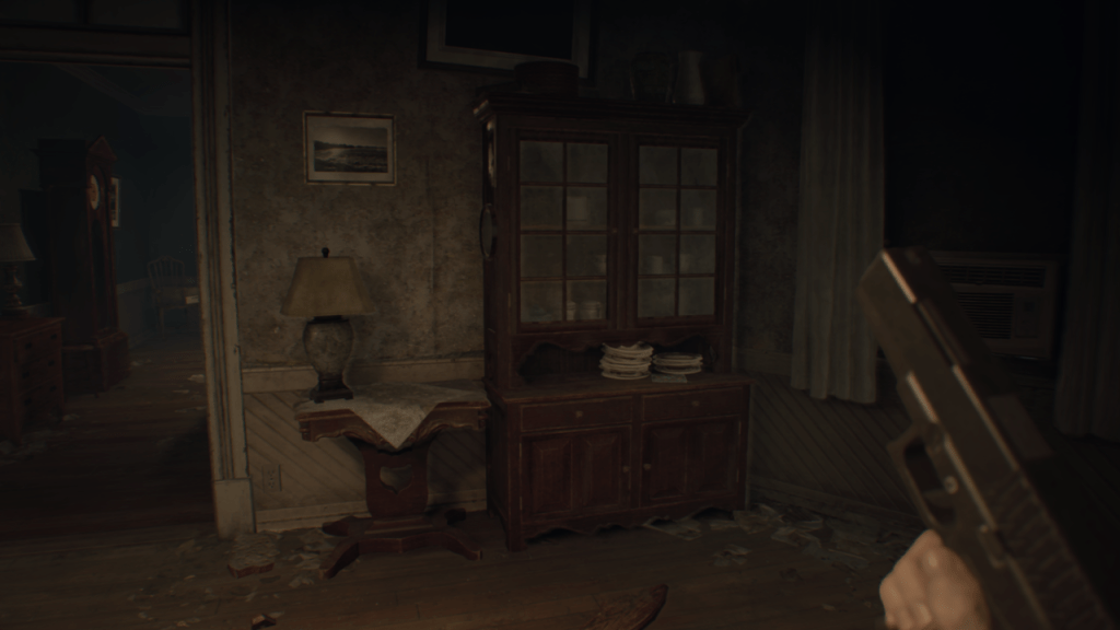 There is a sort of disease spreading through the home, however, undermining its health and style. There are hundreds, thousands of objects inhabiting the space: books, papers, shelves, paintings, tools, plates, photographs, video cassettes, suitcases, more. It is a dizzying, terrifying mess that bestows upon the game a sort of misleading material cadence: calm in the ordered spaces shattered by violence, chaos in the ruins while the heart slows from conflict.